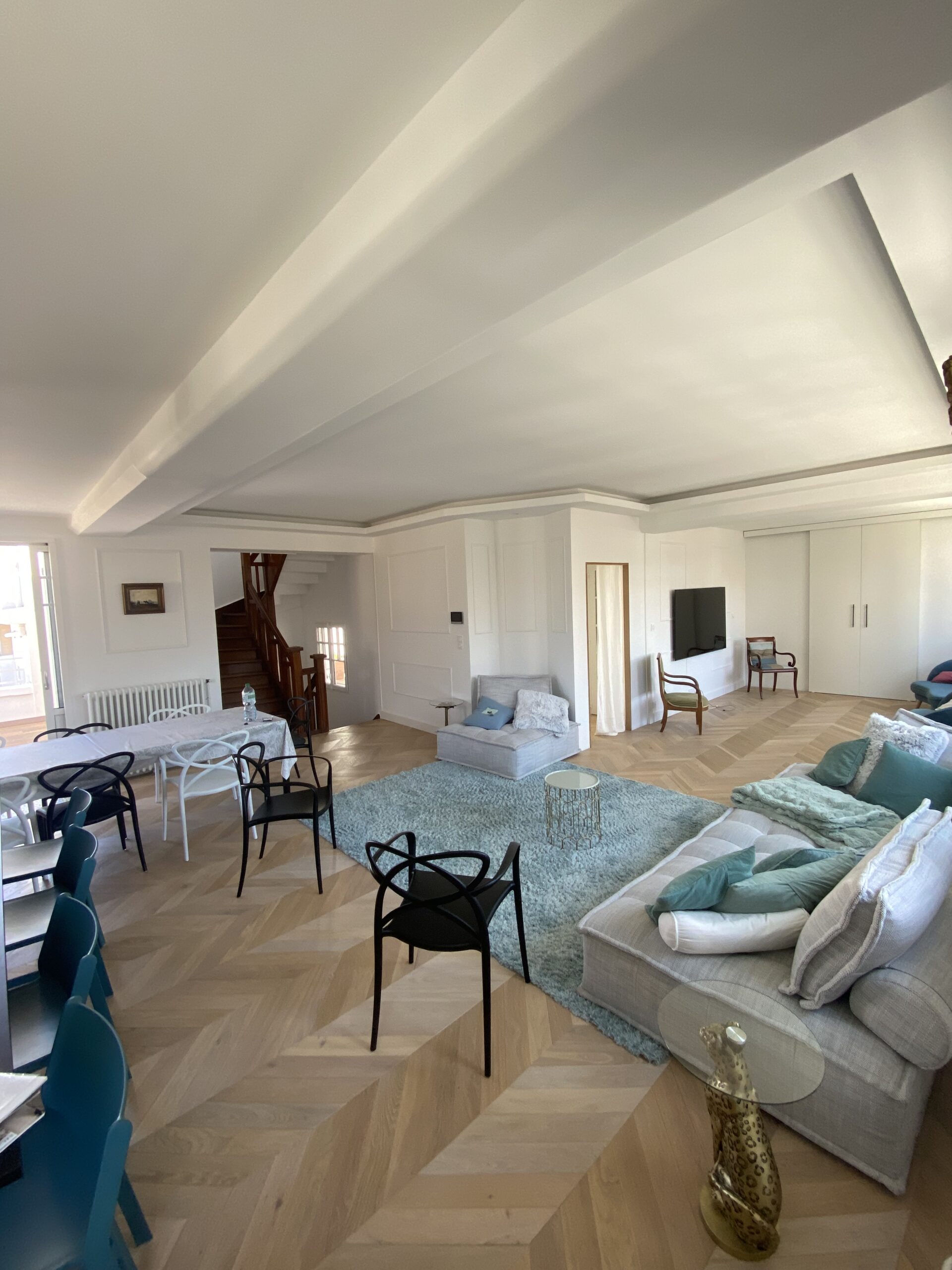 Appartement spacieux en duplex (150 m2 + 70 m2 de terrasse), entièrement rénové, très lumineux.